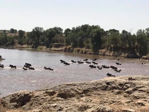 Amazing day with the team in the Masa Mara in Kenya. We arrived just in time to see part of the great migration of wildebeest swimming the Mara River from Tanzania into Kenya looking for grass.